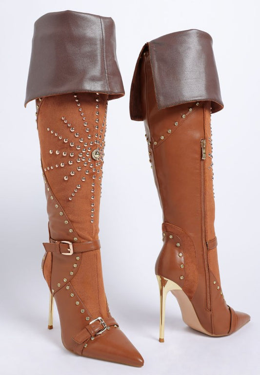 Medira Pointed Toe Embellished Stiletto Boots